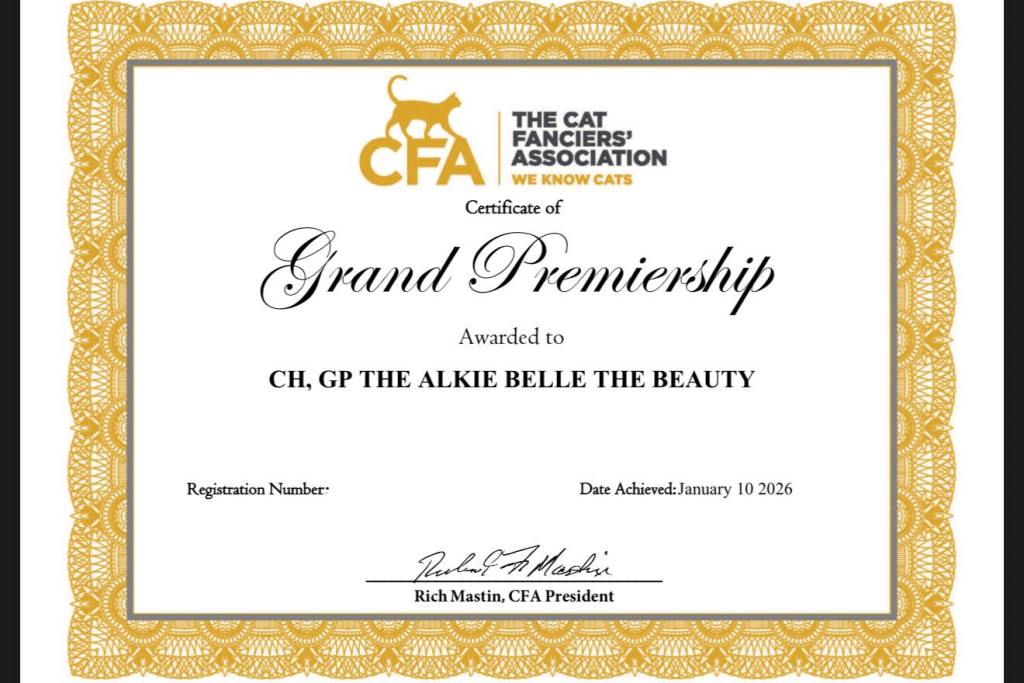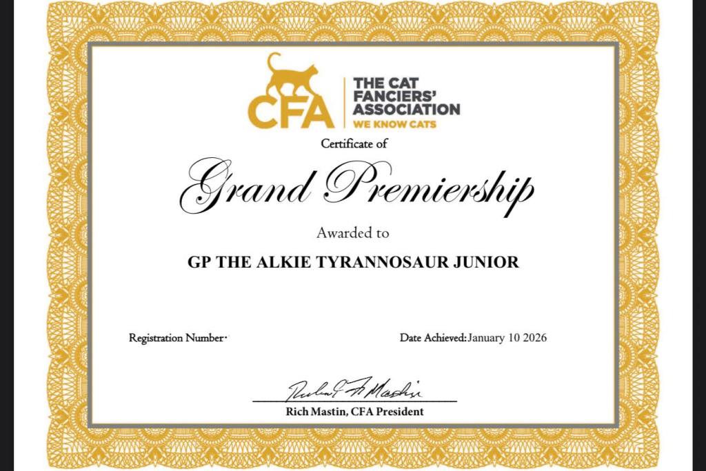 We are delighted to announce that The Alkie Tyannosaur Junior and The Alkie Belle The Beauty have earned enough points to achieve their Grand titles (unofficially) during this event, becoming the first Golden Homebred Siberian Grand in Hong Kong and the first Bimetallic Siberian Grand internationally.